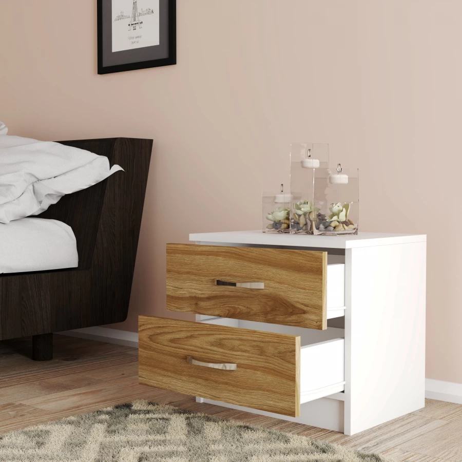 Moxen Mobilya Beyaz 2 Çekmeceli Komodin